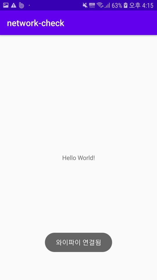 - 네트워크 연결 상태를 토스트 메세지로 띄우도록 한 결과 화면입니다.
