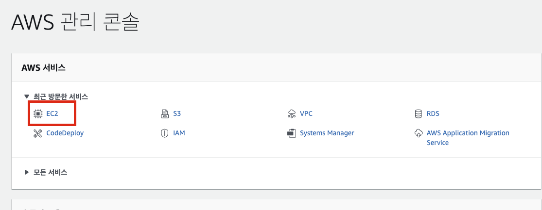 AWS 사이트에서 로그인하면 'AWS 관리 콘솔'이 나오는데 ec2를 클릭하거나 검색합니다.