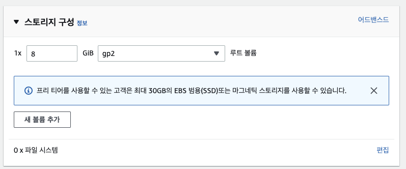 프리티어는 스토리지 용량의 경우 30GB 제한이 있는 것을 아시고 기본적으로 설정된 8GB를 사용합니다.