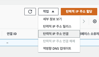 작업 > 주소 연결을 통해 EC2와 인스턴스를 연결해줍니다.