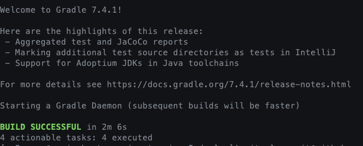 - 프로젝트 내부의 gradlew로 build를 수행합니다.