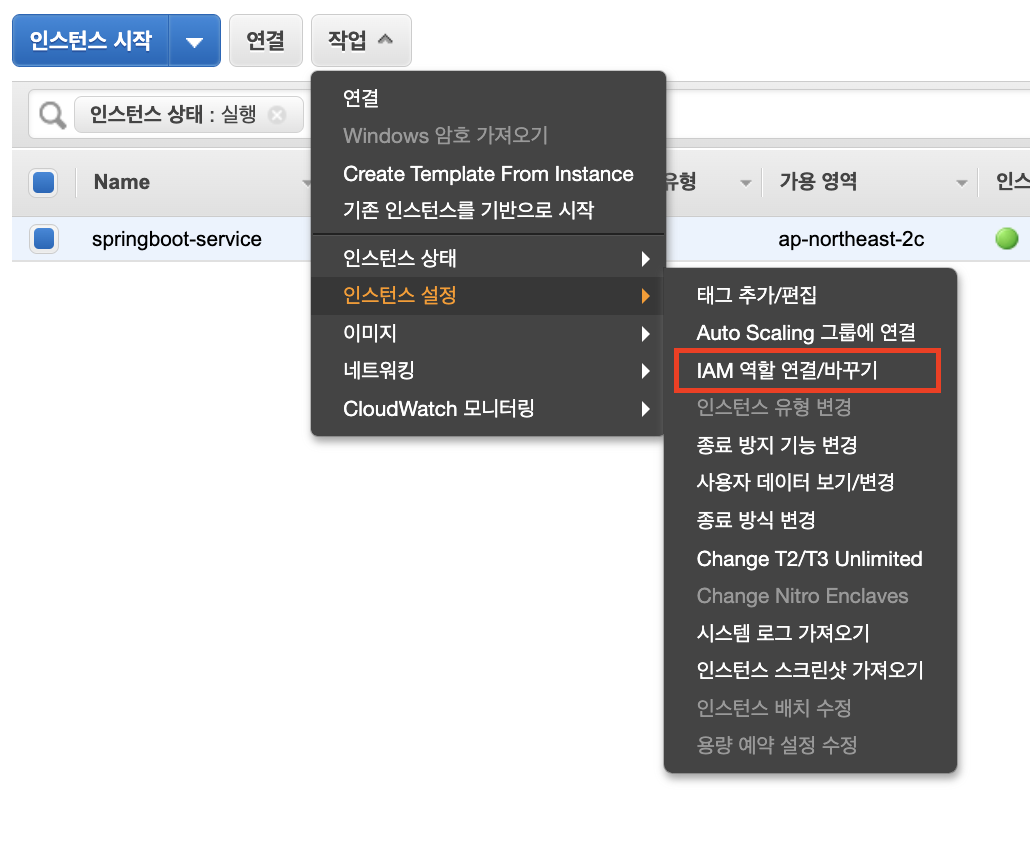 연결 후에는 ec2 인스턴스를 재부팅해줍니다.