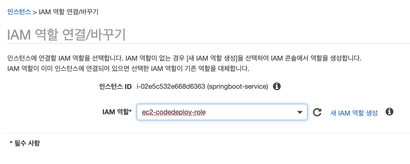 서비스 역할은 4에서 생성한 CodeDeploy용 IAM 역할을 선택하면 된다.