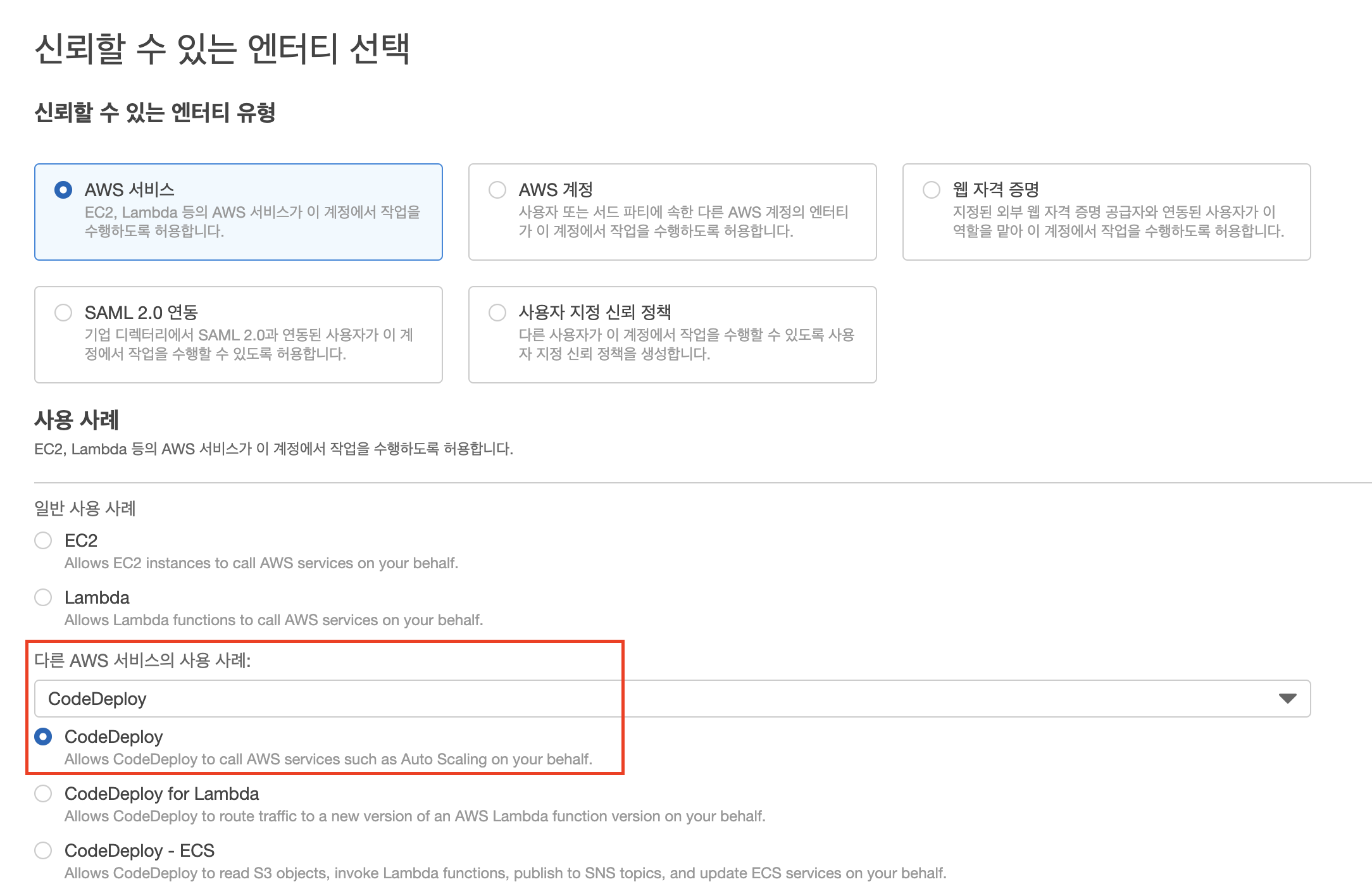 CodeDeploy를 위한 권한 생성