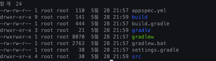 - CodeDeploy에서 EC2 서버로 넘겨준 파일들 모두 ec2-user 권한을 갖게 한다.