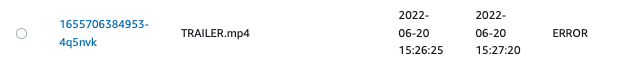만약 상태가 다음과 같이 'ERROR'로 나온다면 작업 상세 화면에 들어가서 오류 메시지를 확인해줍니다.