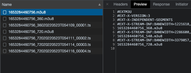 2. 처음에는 가장 낮은 화질인 {영상이름}_360.m3u8 파일을 가져오고