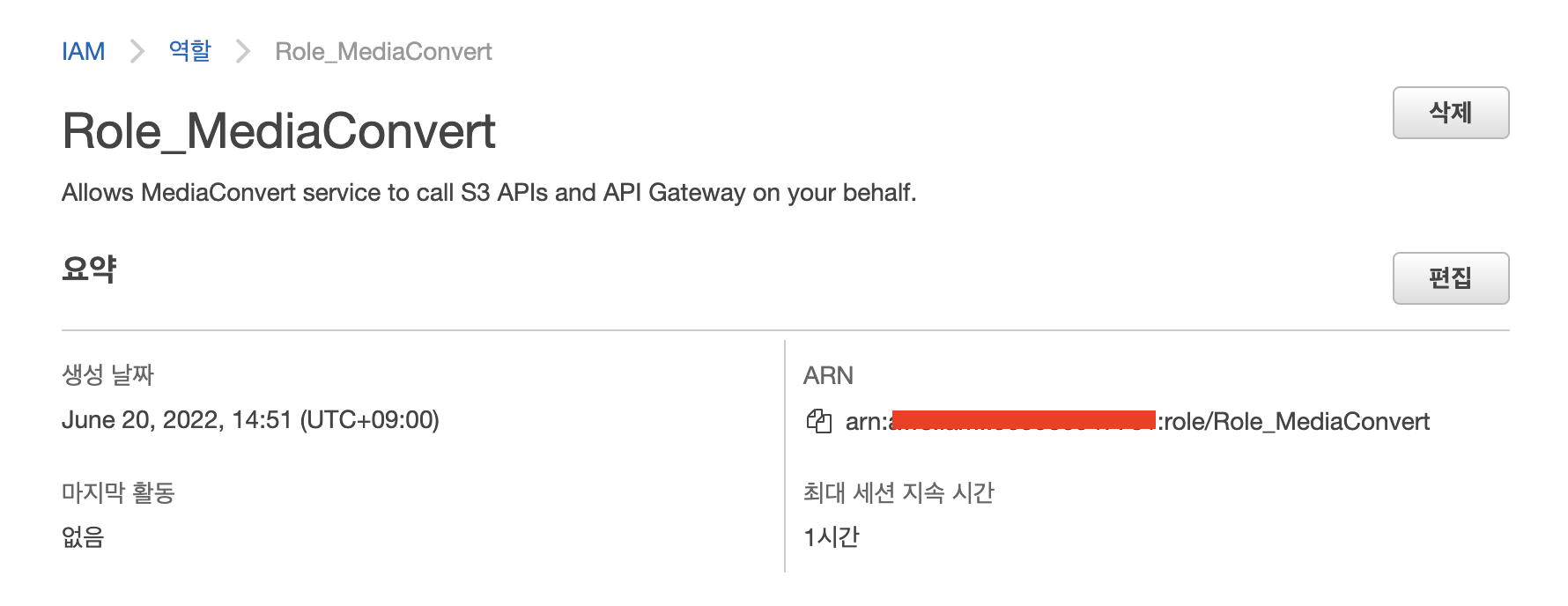 먼저 Role_MediaConvert에 있는 ARN을 복사합니다.