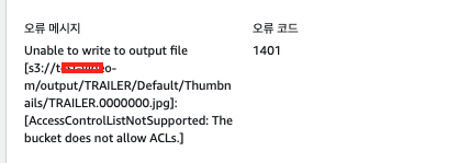 저의 경우에는 버킷이 ACLs을 허용하지 않아서 생기는 오류였습니다.