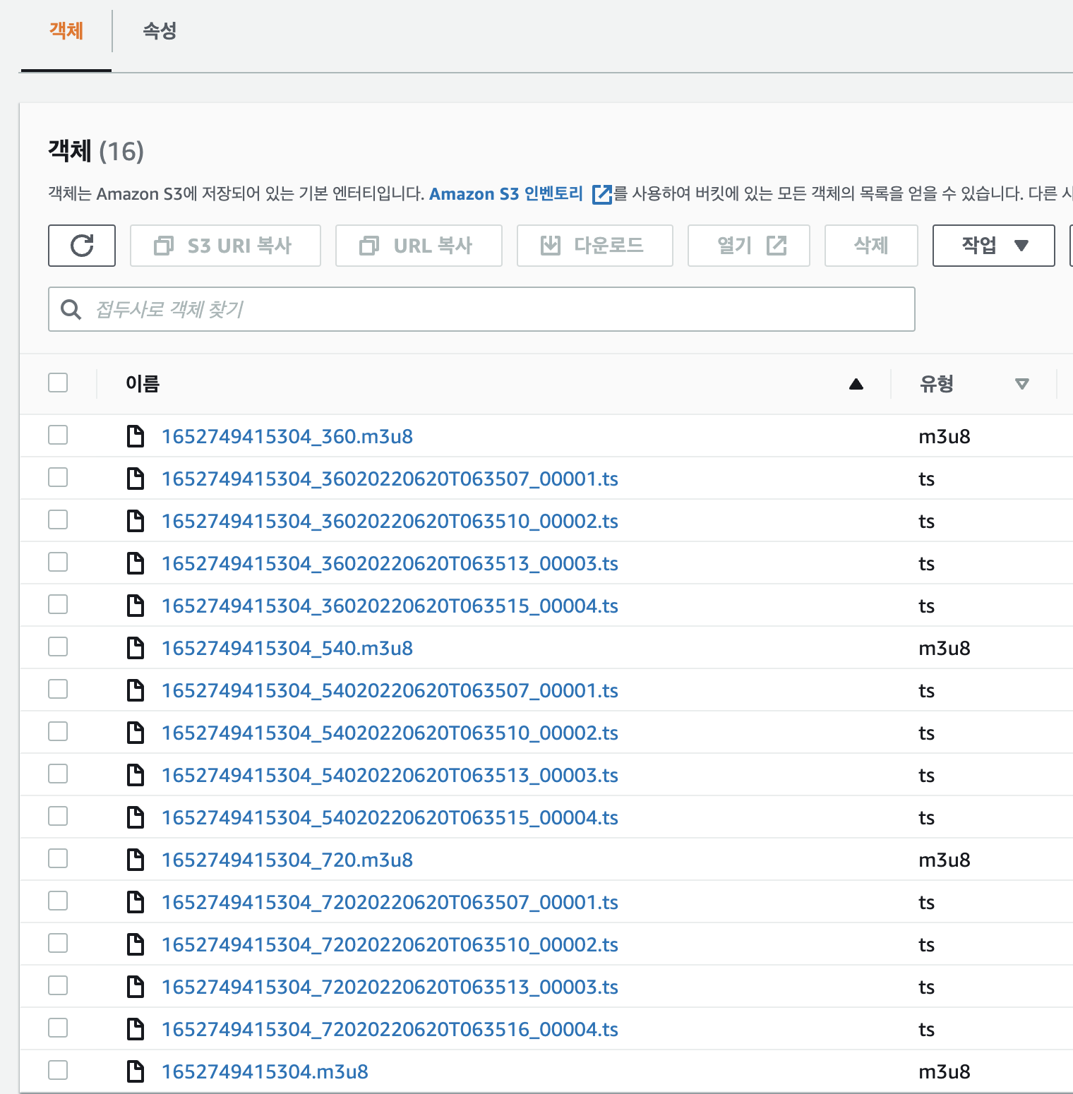 - 변환된 파일들은 S3의 지정된 버킷 안의 폴더에 저장됩니다.