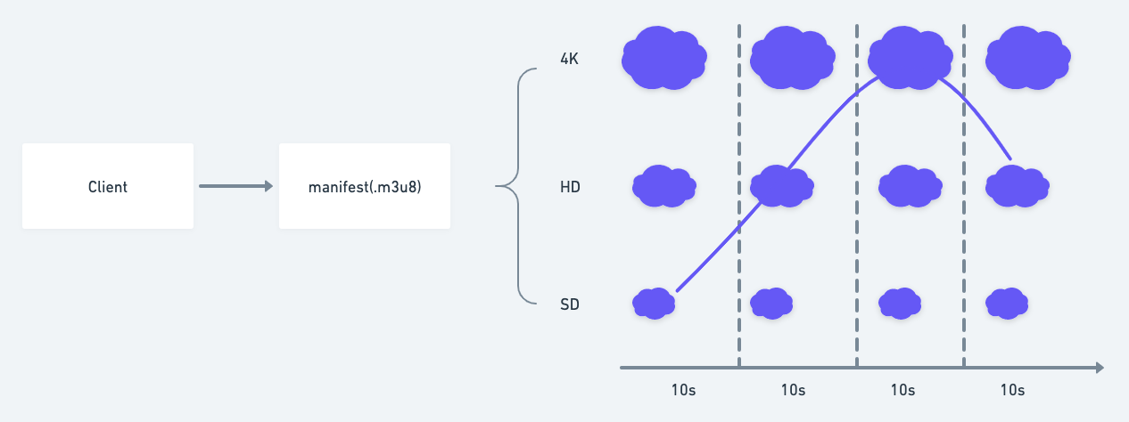 - 클라이언트는 .m3u8 확장자를 가진 manifest 파일을 받습니다.