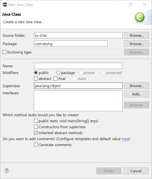 - Finish를 클릭해 프로젝트를 생성합니다.