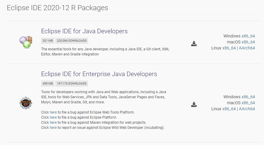 Eclipse IDE for Java Developers를 다운받으면 나중에 웹 개발을 위한 플러그인을 따로 설치하셔야 합니다.