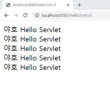 이번에 만들 것은 서버로 값을 보낸 이후에 보낸 숫자만큼 Hello Servlet을 브라우저에 출력해볼 것입니다.