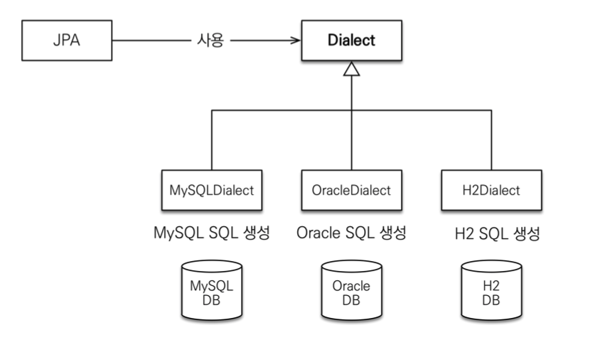 - dialect는 JPA가 많은 데이터베이스를 지원해야 하는 문제 때문에 생긴 속성입니다.
